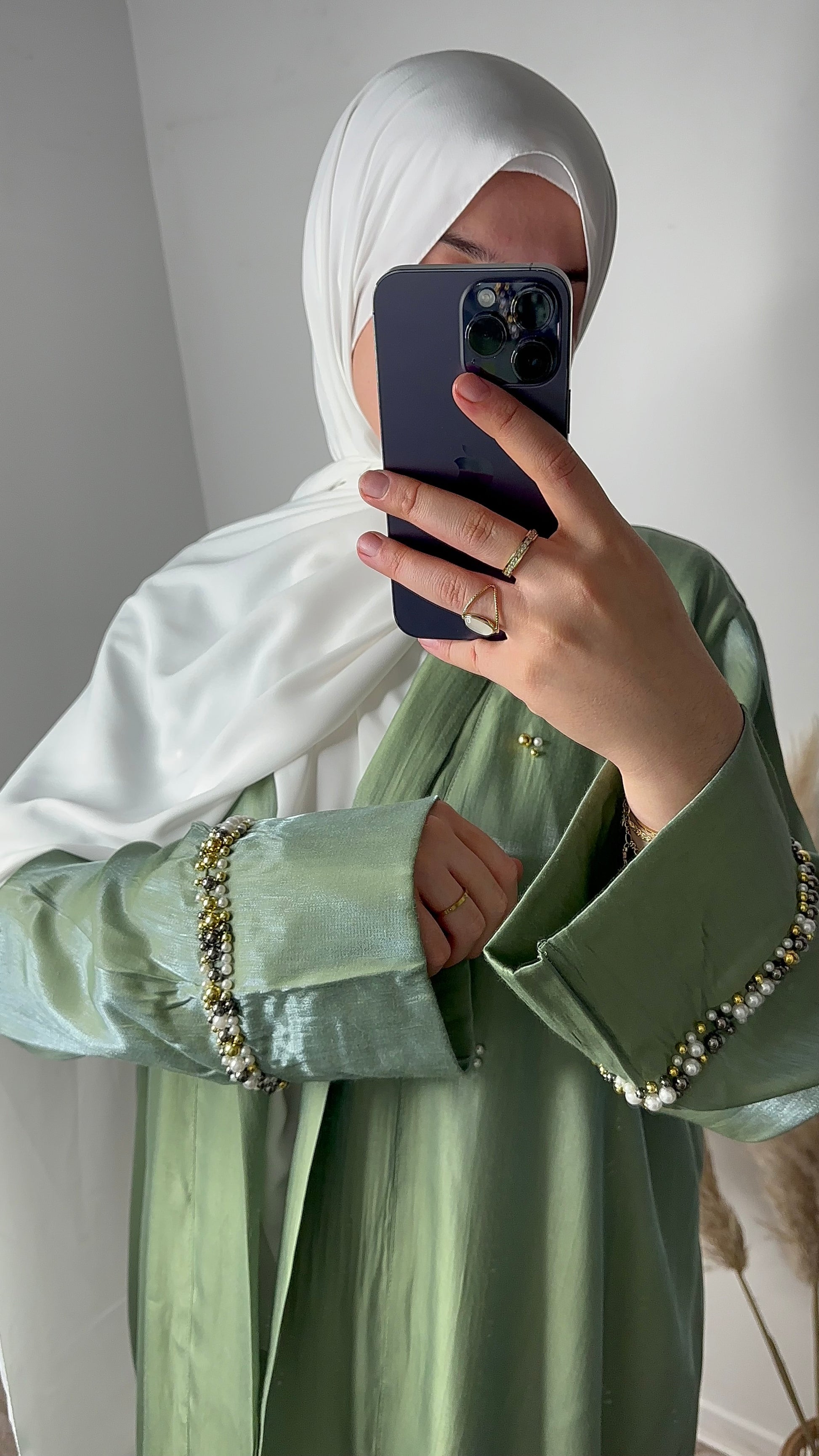 DÉCOUVREZ NOTRE KIMONO PERLE FARAH, UNE CRÉATION QUI CAPTE L'ESSENCE DE LA FÉMINITÉ ET DU GLAMOUR. CONFECTIONNÉE AVEC DES TISSUS RICHES ET AGRÉMENTÉE DE DÉTAILS SCINTILLANTS, CETTE ABAYA EST DESTINÉE À BRILLER. PARFAITE POUR LES SOIRÉES ET LES OCCASIONS SPÉCIALES.